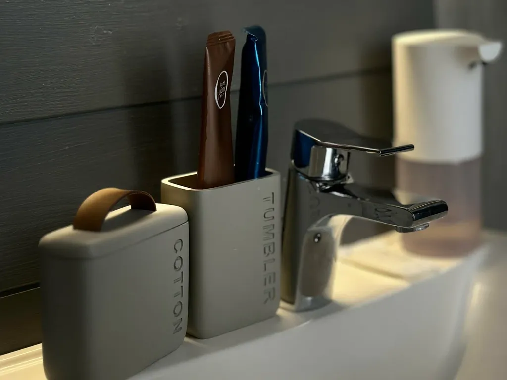 Домик рассчитан на 4-х человек. В нем есть личный санузел с душевой, кухня-гостиная и спальня с панорамными окнами.
