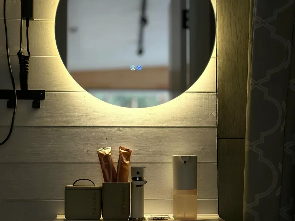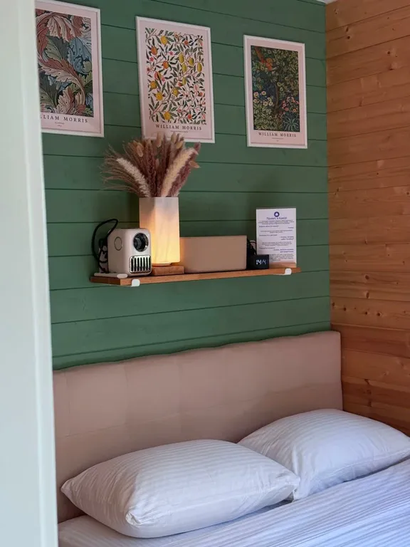 Уютная спальня, где вы сможете провести волшебный вечер, смотря любимые фильмы на smart-проекторе. Мы подключили подписку в приложении «Кинопоиск», где найдете фильмы и сериалы на любой вкус. Двуспальная кровать с белоснежным бельем и премиальным матрасом создаст условия для комфортного сна. Умная Яндекс-станция «Алиса» создаст нужную атмосферу: включит любимые песни или расскажет сказки детям.